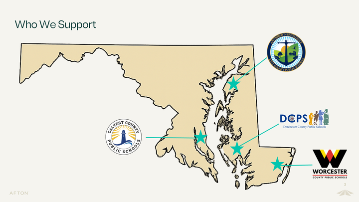 Afton partnered directly with the school systems of Kent, Dorchester, Calvert, and Worcester counties, partnering with each to tailor district-specific project plans according to their needs, but centering all on the focus of meeting the Blueprint’s Minimum School Funding (MSF) requirement.